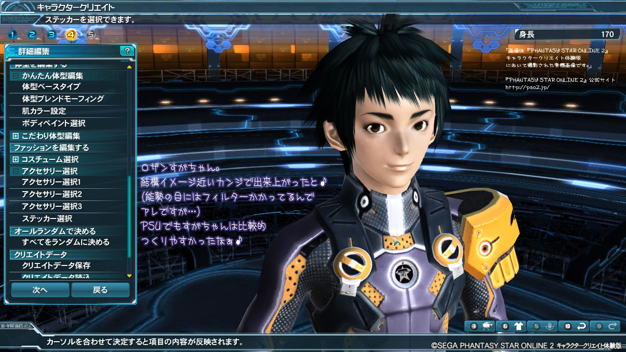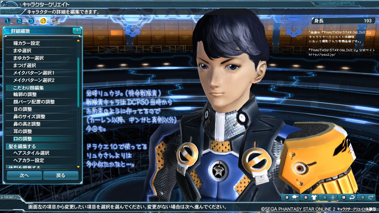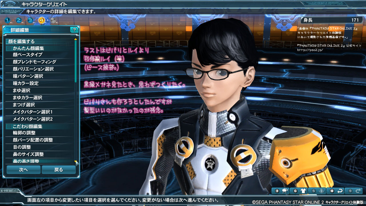「画像は『PHANTASY STAR ONLINE 2』キャラクタークリエイト体験版において撮影された実機画像です。」