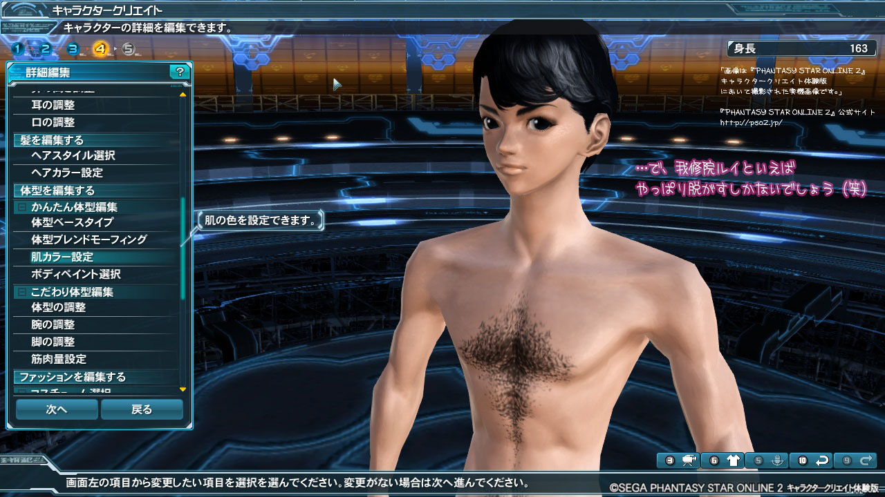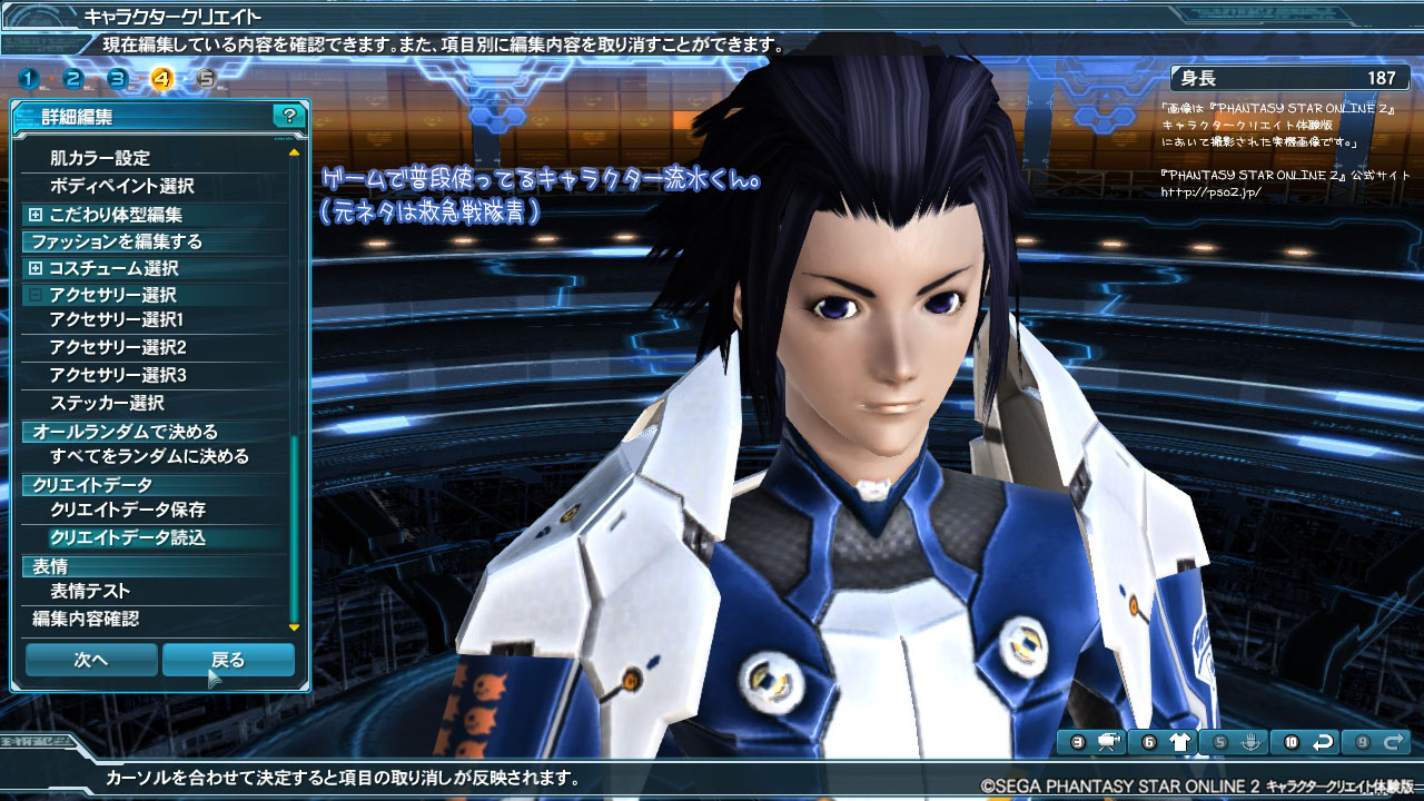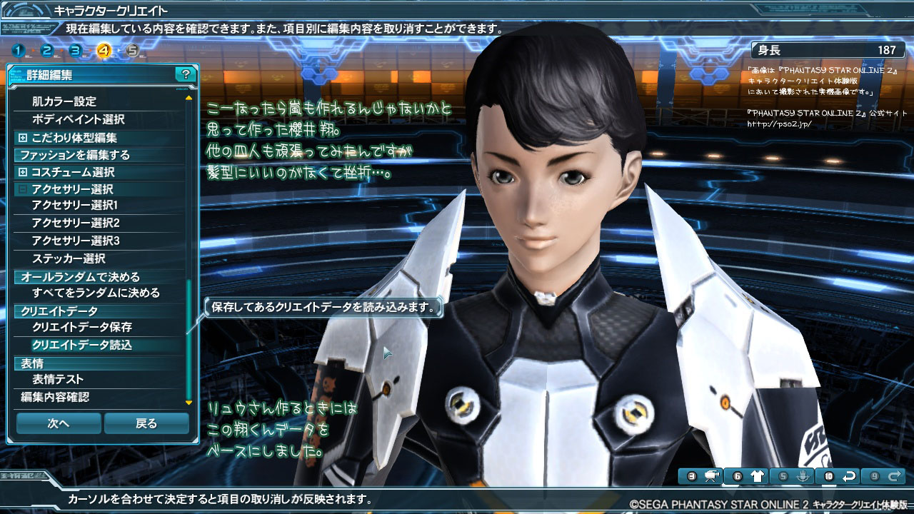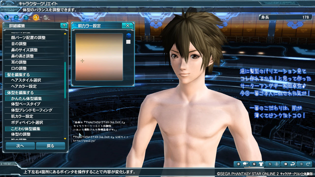 「画像は『PHANTASY STAR ONLINE 2』キャラクタークリエイト体験版において撮影された実機画像です。」