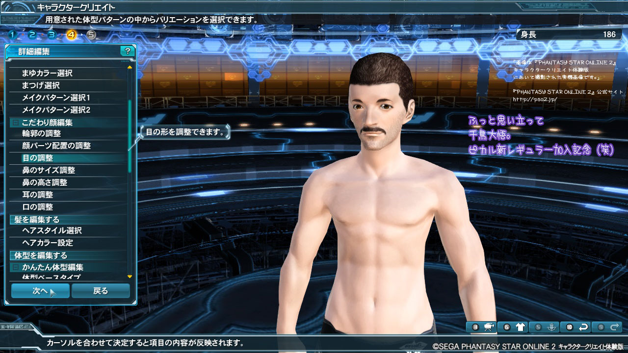 現在PSO2サイトで無料配布中のキャラクリ体験ゲーム(ベンチマーク付)。
